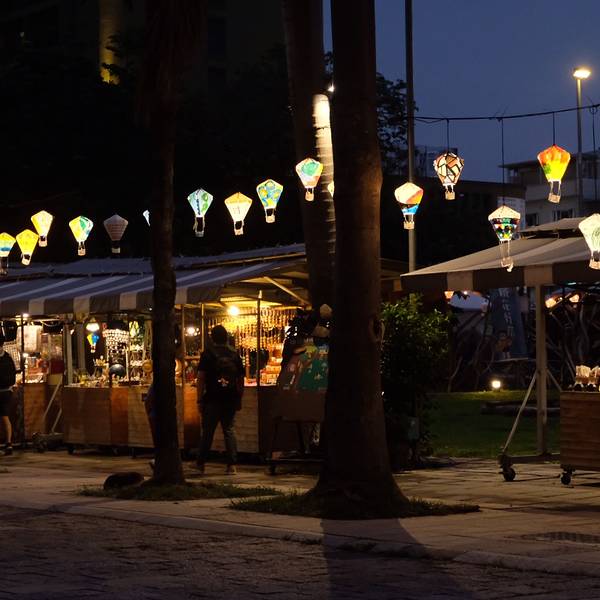 铁花村地带很方便,靠近我入住的青旅,附近也有我未曾到访的 台东 故事馆、诚品书局。走进这个音乐聚落,沿路看到好几幢在经营着工艺品和餐饮的日式木造平房,路旁一排排老树,草坪交界上方挂着色彩鲜艳十分可爱的彩绘热气球。如果草坪没有那么多湿气,又有朋友陪伴,我很想带上野餐布,买一些水果饭团,和好友来一场野餐聊天。当日是周末,刚好这边举行的铁人三项比赛(还是铁人马拉松),所以无论游客还是 台湾 人都很多。