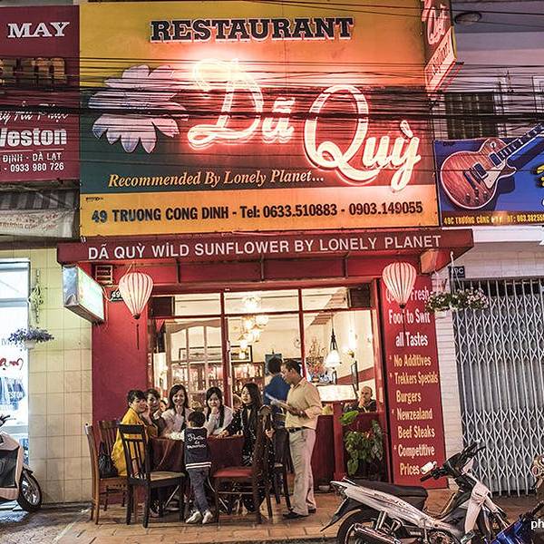 坐着Futa的车,据说4个小时就到了,晃晃悠悠的差不多6个多小时才到。(Futa的大叻车站在一个很类似广场的地方,周围没有车,之前准备好酒店的信息,下车给他们看就好了,他们会安排你坐哪辆小车送你,因为有些人穿了绿色的工作服,有些没有穿,一下车一堆人围过来,我还以为是路边拉客的,问我酒店在哪我也不说话,后来才发现都是Futa的工作人员,他们的车都有标志的。) 大叻真的非常冷,我是那种只要变天就生病的体制,下了车就不舒服了,在酒店休息了一会儿导航去吃饭,午饭太晚,晚饭太早。旅游不就是这样,不是按部就班,想什么时候干嘛就干嘛,哈哈。 Da Quy 大叻的导航都是走小胡同的,不用怀疑,大胆的往前走吧,相信导航。 我们去的时候店里一个人都没有,过了一会有个骑摩托车的女人到厨房做菜,做完就走了,在越南上班也太舒服了吧。越士火锅本来计划吃完去疯狂屋,但突然一下到了这么冷的地方头痛的厉害,只想回去睡觉。