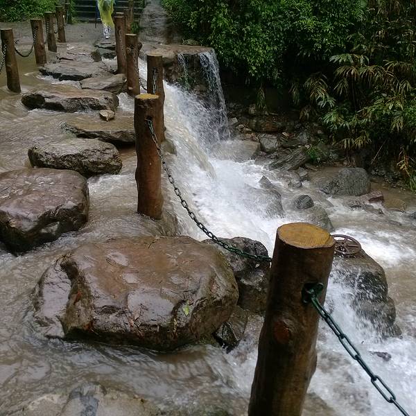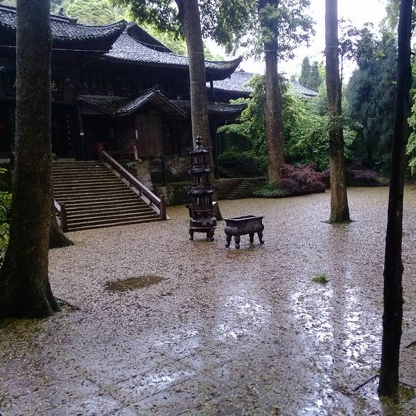 正好是下雨登山,看到了峨眉山雨季流水蔓延,深林翠绿的一面峨眉山众多寺庙的一个,纯阳殿,一路上会至少经过10个不同,各具特色的古庙,寺庙一般都提供住宿,因为峨眉山实在太高,正常要两天一夜才能爬完,不住宿的话不行