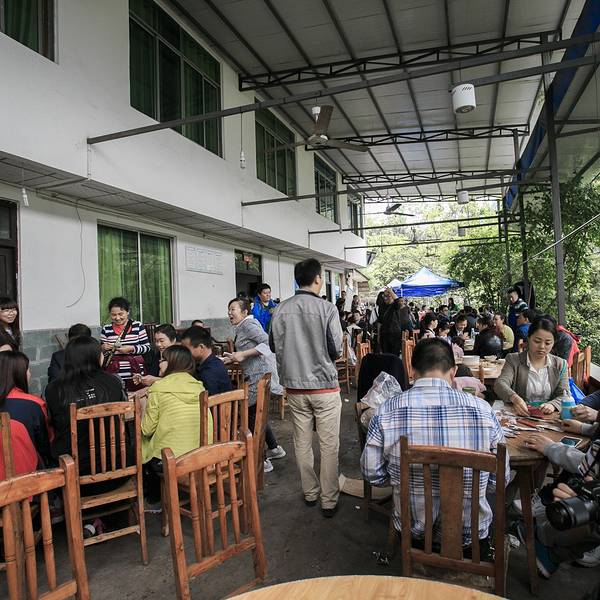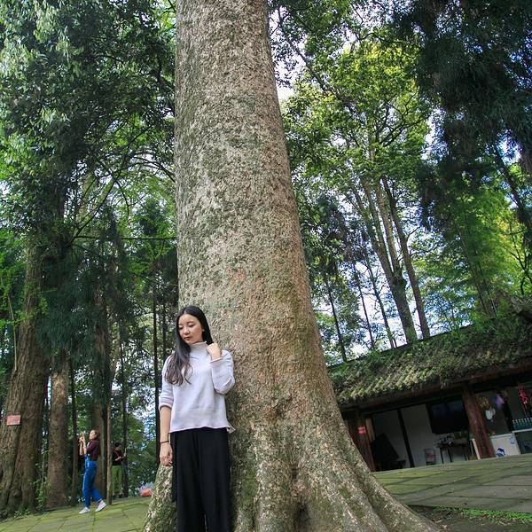 爬山确实很累,在这里稍作休息。我们抱着纯阳殿前的这棵古树,拍了张照片。这个季节正是吃竹笋的季节,峨眉山的斑竹笋长得也太大了神水豆花很出名,在纯阳殿到神水阁的这条路上,有好几个农家乐可以吃豆花饭