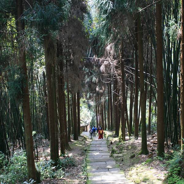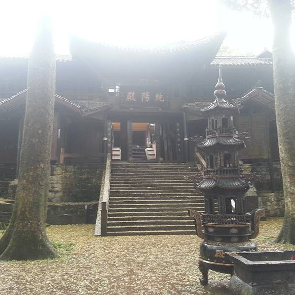 经过一段山路来到纯阳殿,这里是纪念吕洞宾而设立的道观,道观内殿堂依山建立,门前广场上有好多大树...从雷音寺继续前行,经过一段山路来到纯阳殿,这里是纪念吕洞宾而设立的道观,道观内殿堂依山建立,门前广场上有好多大树,遮天蔽日,雨后有点湿滑。