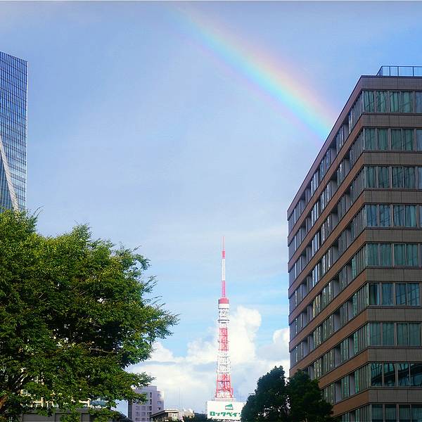 也许东京市区下过一场迷蒙细雨,天边出现一道彩虹。这算是东京给我们的礼物吧?