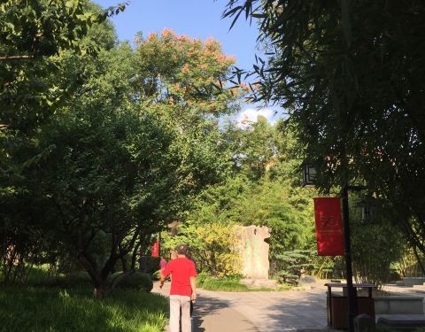 平时遛娃,休息,散步,都可以去,公园比较大,山水鸟鱼都有,空气好,环境优美,整个园子里面还有活动设备,老人下棋,太极拳,湖中心还有舞蹈,幽静处有人吹黑管