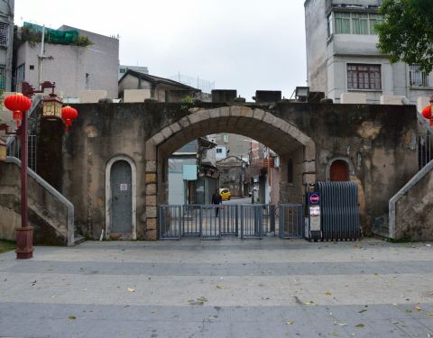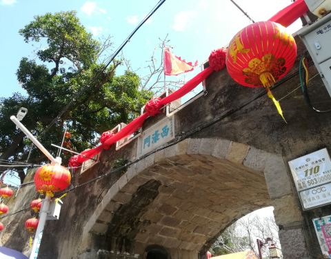 在濠江区吧,感觉老街道里面都算古城,有不少寺庙和老房子,不过这边看起来比较好看些,不大,但是幽静些,有围墙围着,内部有几座建筑。