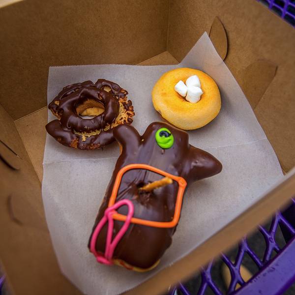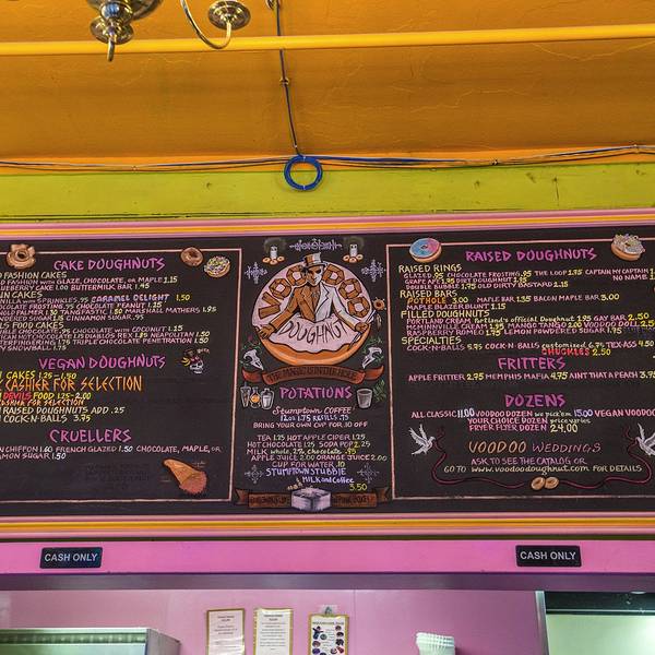 这家人气百分百的Voodoo Doughnuts 几乎是每个去波特兰的人必吃的东西,就像去北京要看故宫,来波特兰就必吃Voodoo Doughnuts。Voodoo Doughnut 之所以这么受吹捧,是因为他们家卖的的甜甜圈好有造型的,风格奇特。其中最著名的造型就是巫毒娃娃小人形造型的甜甜圈。被涂上厚厚的巧克力糖衣,心脏上面还插的一根脆饼干,模仿被虐待诅咒的巫毒娃娃。咬下去之后还会爆浆,亮点是里面的填的是红果酱,看起来就像喷血一样,很血腥,但是,要吃到夯翻天的巫毒娃娃排队1~2 小时是非常正常的事情。