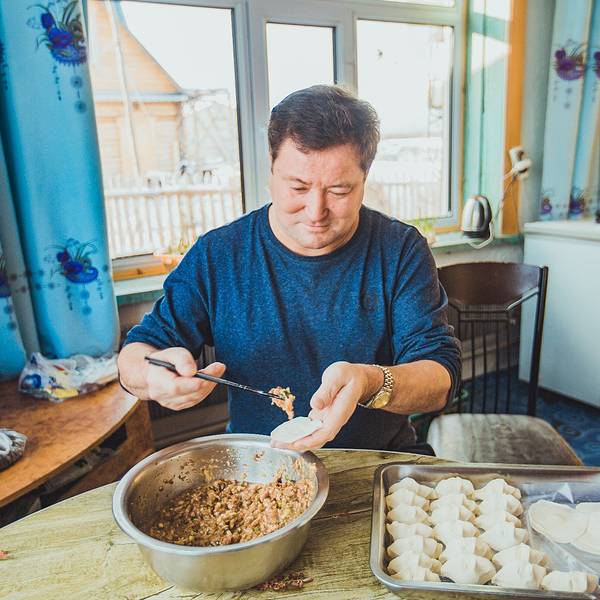 小峰告诉我们这几年恩和的变化也特别大,一些比较老旧的木刻楞也都已经拆掉了。很多酒店也是外地人过来开的,但是他们家可是不折不扣的俄罗斯族喔~而且他的爸爸长的特别帅!旺季酒店营业的时候,叔叔就会在大厅跟客人们唱自己拿手的俄罗斯歌曲,带大家唱歌喝酒跳舞,还是更钟爱住这种比较有人情味的酒店,迫不及待想在夏天的时候再来感受一下。今天的午餐是我吃过最棒的一餐,叔叔亲自给我们包饺子!叔叔不仅包的饺子很好吃,东北话也说的超级6,而且特别会说话逗小峰妈妈开心,我们都笑小峰要多跟爸爸学习才能找到女朋友!家常菜的味道是无论哪种美味也取代不了的,能让我在旅途中有家般温暖的次数不多,每一次和阿怪还有海洲一起旅行,我总能找到这种感觉,哎呀,一不小心又煽情了。那就让我们为这不锈钢般的友谊干杯吧!杯子里装的是自己家酿的蓝莓酒,我本来是一个不喝酒的人,还是被它的颜值折服了,忍不住小尝了一口。