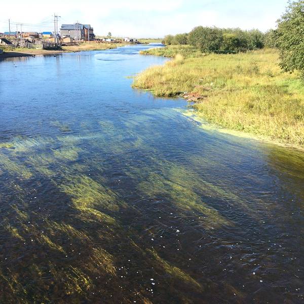 恩和镇上,一条美丽的河,水里长满水草。