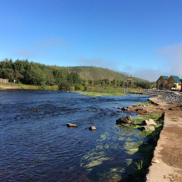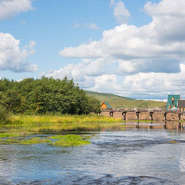 这里到处是俄罗斯风格的木刻楞。木刻楞是用木头和手斧刻出来的,有楞有角,非常规范和整齐,所以人们就叫它木刻楞。宁谧的小镇里一只慵懒的小狗。倒影下的蓝天。除了第一天在草原的阴雨,我们此行后面几天基本是晴好天相伴,这在呼伦贝尔的初秋相当难得。赞誉恩和美景。离开恩和继续沿省道北上,这里已是随处可以看到耐严寒的白桦林。