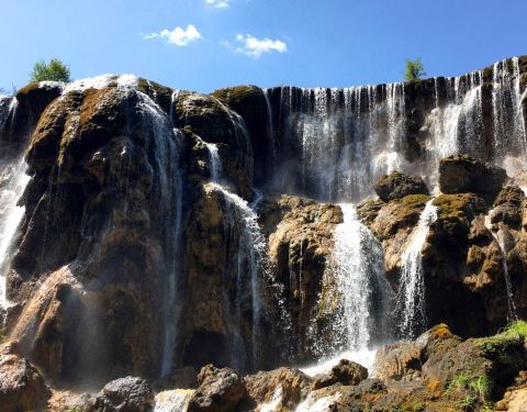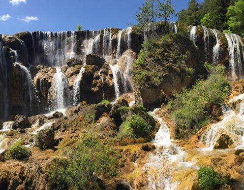 从九寨沟的诺日朗瀑布沿着步道向下徒步而行,一路上可以看到溪流和森林。在靠近沟底的地方,便来到珍珠滩瀑布。这是由雪山融水形成,并且是九寨沟最大的钙化瀑布,也是九寨沟中水势最大的瀑布。与高高在上的诺日...