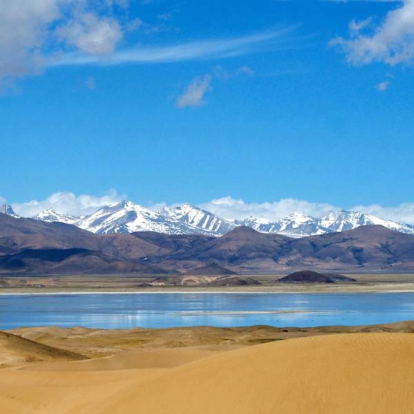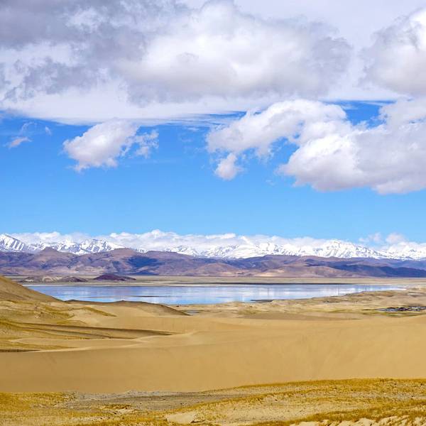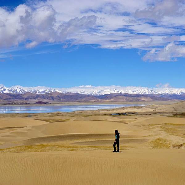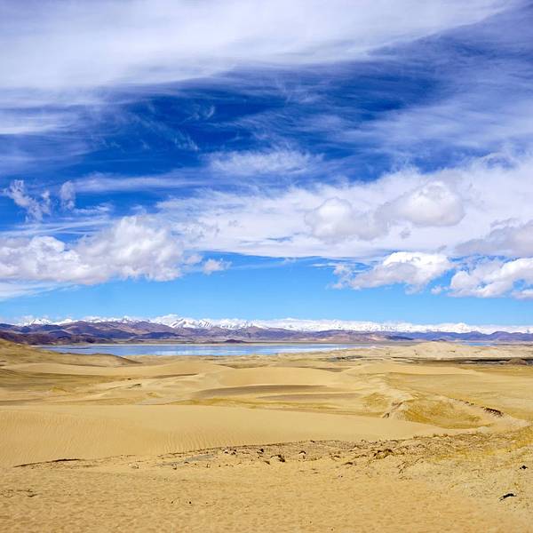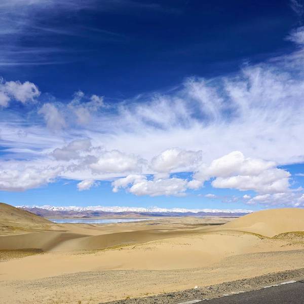 我总是改不掉喜欢拍云的“毛病”,在阿里这一路我总是会沉浸在和天空的交流中,感受天空带给我的喜悦。上面这张照片中,那两座很黑的山,是刚好有云遮住了 光线、投下的阴影落在山上,多么奇妙的巧合。而且,仔细看天空的颜色,竟然是有两种蓝色,上面几张天空比较多的更为明显。 发源于喜马拉雅山北麓的杰马央宗曲,是雅鲁藏布江的正源。“杰马央宗曲”是当地人对杰马央宗冰川融水汇集成的河的称谓。杰马央宗冰川位于日喀则地区仲巴县境内,雅江源出自喜马拉雅山中段北麓,那木那尼峰东端,海拔6000米以上,是世界上海拔最高的江河源。 雅江源观景台设在路边,爬上一座小沙丘,就能看到远处的马央宗冰川和杰马央宗曲。这一带地形很有层次,靠近路边是沙丘,沙丘前面是河流,河流背后是雪山,实在是太美了!太纯净了!