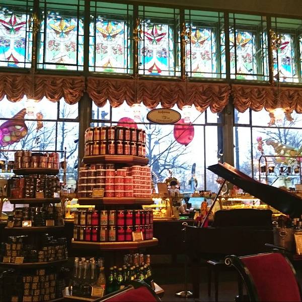 很难把那么一个集富丽堂皇和小清新于一身的漂亮地界儿和食品商店这样一个土掉渣的名字联系到一起。可叶利谢耶夫食品店偏偏就是那么一个所在。豪华优雅的装饰,水晶吊灯,精致的食品,英语流利又周到的服务员。被上海第一食品商店歪曲了那么多年的食品店形象终于得到重塑,不可以貌取人也不能以名取店啊。
