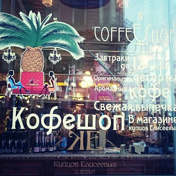 - 可叶利谢耶夫食品店偏偏就是那么一个所在。食品店还有附属的咖啡店,可惜本不多的位置座无虚席