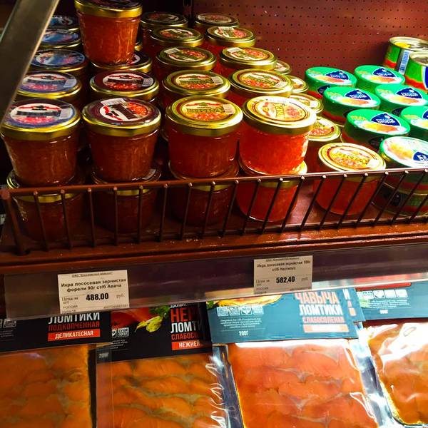 不过在这座装饰仿佛宫殿一般的“超市”购物,总会让人的关注点聚焦不到食品上。俄罗斯最出名的鱼子酱
