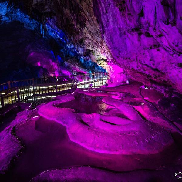 雪溪龙宫、矮檐、孽龙吞江、佛光普照、金秋晚照、凤凰台、南海仙慈、灵山宝塔、神龙池、蟋桃树、天桥、盘古玉树、金龟托塔、双蟾拜塔、天潭映月、曲径通幽、千秋田、长寿金钟、生命之源、二龙戏珠、玉虚幻境等几十余个景点,均是美到极致的自然奇迹。从我初入洞中开始, 眼眸已被五彩霓虹和奇俊钟乳所填满, 心中已被无数惊叹和赞誉所填满, 我真是找不到再美的语言来形容这些大自然之奇, 只能用手中的相机囊括所有的美景, 能让我在离开后的某一日还能唏嘘的回忆。