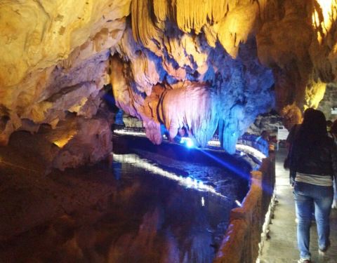 50元一张票是真的不值,游玩时间就一个小时,全程景观就是看洞,洞很深,一直往里走,到尽头之后需...50元一张票是真的不值,游玩时间就一个小时,全程景观就是看洞,洞很深,一直往里走,到尽头之后需要原路返回到出口,洞内就是各种灯光照到石头上面。没啥特色,不建议去。不过门口的小吃挺便宜的,并没有因为是...50元一张票是真的不值,游玩时间就一个小时,全程景观就是看洞,洞很深,一直往里走,到尽头之后需要原路返回到出口,洞内就是各种灯光照到石头上面。没啥特色,不建议去。不过门口的小吃挺便宜的,并没有因为是景区而加价 展开