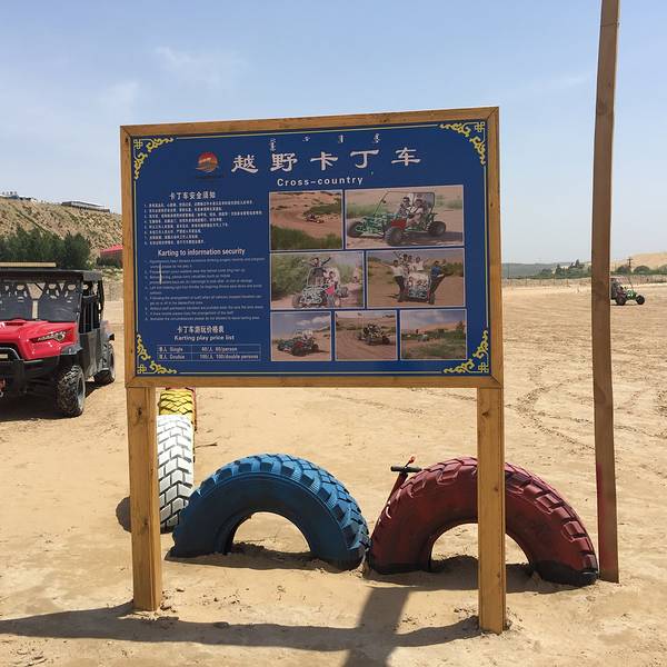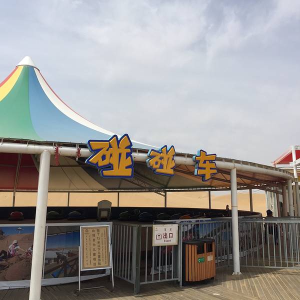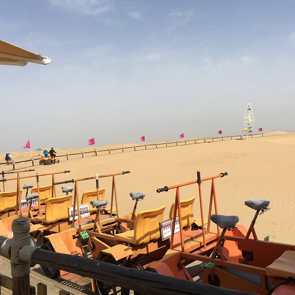就在滑沙的下面,这个项目可以自己开哦✌️,只有油门和刹车,和自动挡汽车一样,很简单,大一点的小朋友也可以玩儿,因为没有很多沙,所以也不是很过瘾!都是这种车🚙结束游玩项目,从响沙湾拍到酒店🏨的全景图,真的很漂亮!
