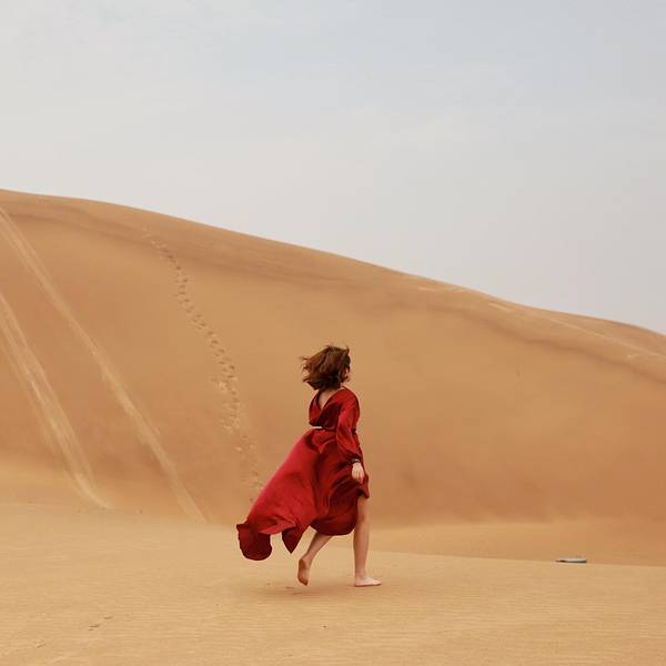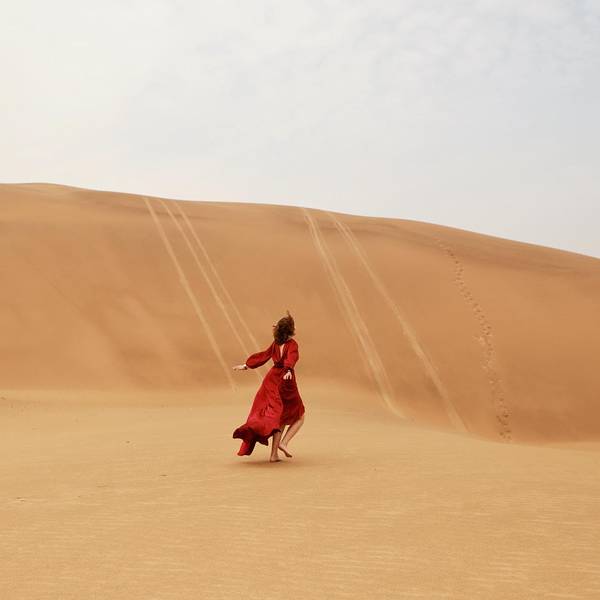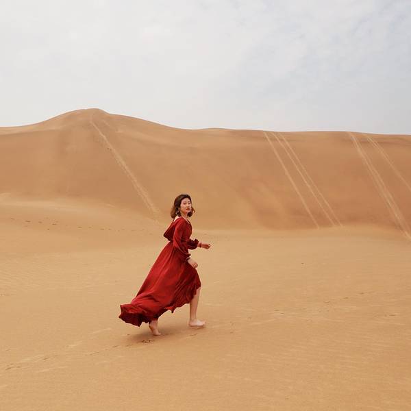 沙漠里的风,温柔又暴力,奔跑起来,能听到空气中猎猎作响。头发飘起来,裙摆飞起来,风力拖拽着我向后,可我偏偏前行。当然要脱下鞋子啊,用我37码的脚丈量这片土地。