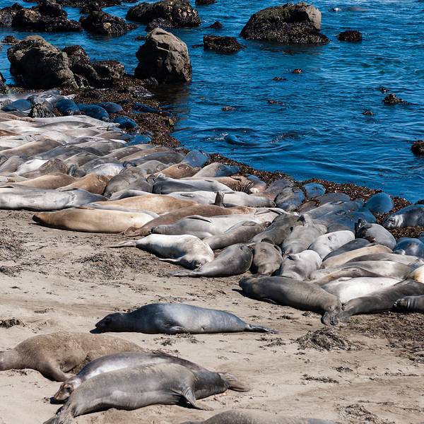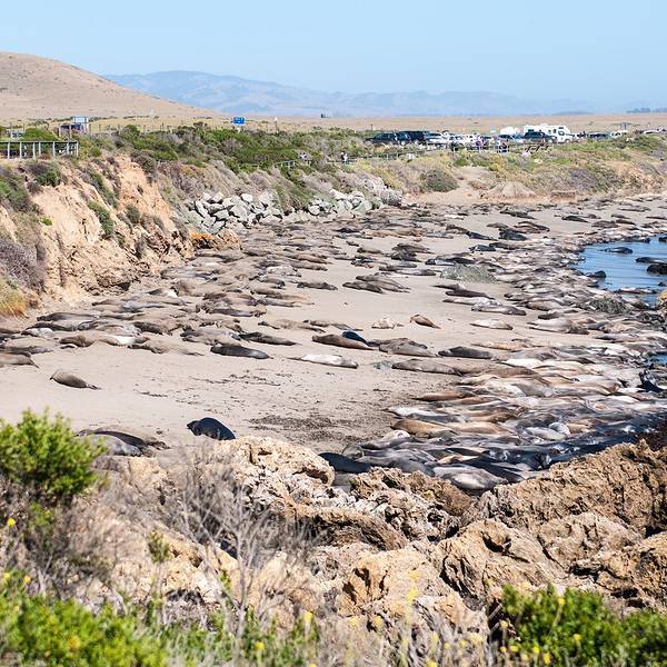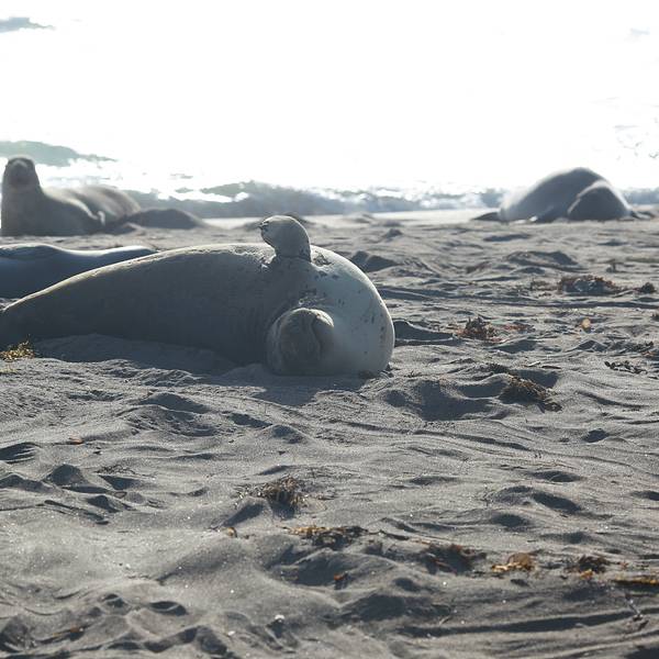 Elephant Seal是一种容易让人混清的动物,有人说是海象,有人说是海豹,居然还有人说是海狮!其实人家是象海豹啦, 属于海豹的一种,肥噜噜圆嘟嘟,数干只象海豹趴在沙滩上晒太阳,有的互相依偎着睡觉,有的打喷嚏,有的嫌日光太晒拨沙子到自己身上,有的身体痒痒用小小的手抓痒,还有的互相撕咬打架,但,你们打架的动作这么迟缓,确定不是来卖萌的吗?!象海豹观景点(Elephant Seal Vista Point)虽然一直飘着象海豹们臭臭的味道,但却是个不用花钱的好景点,沙滩还设置了行人专用的观景步道,你一定会忍不住多待一会儿观察它们。