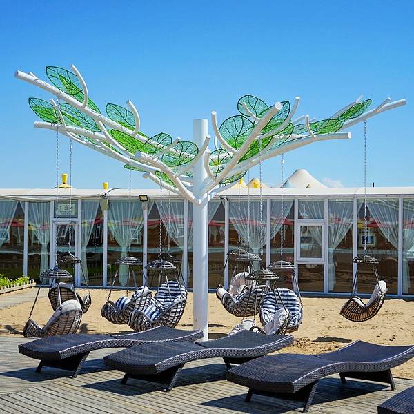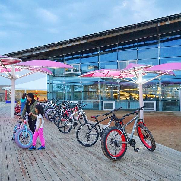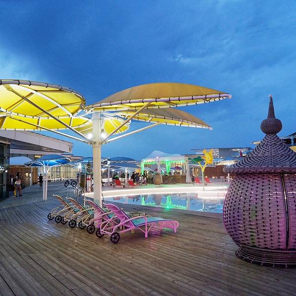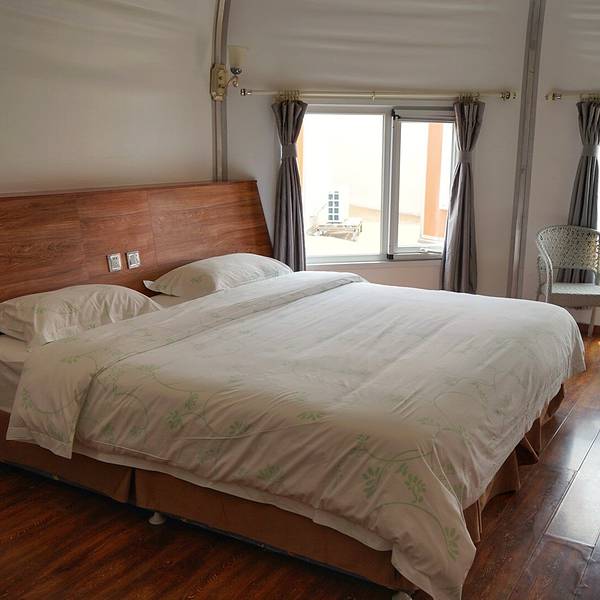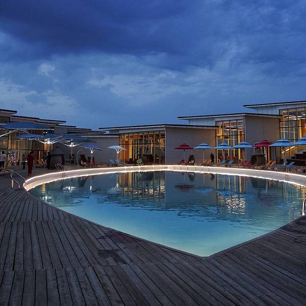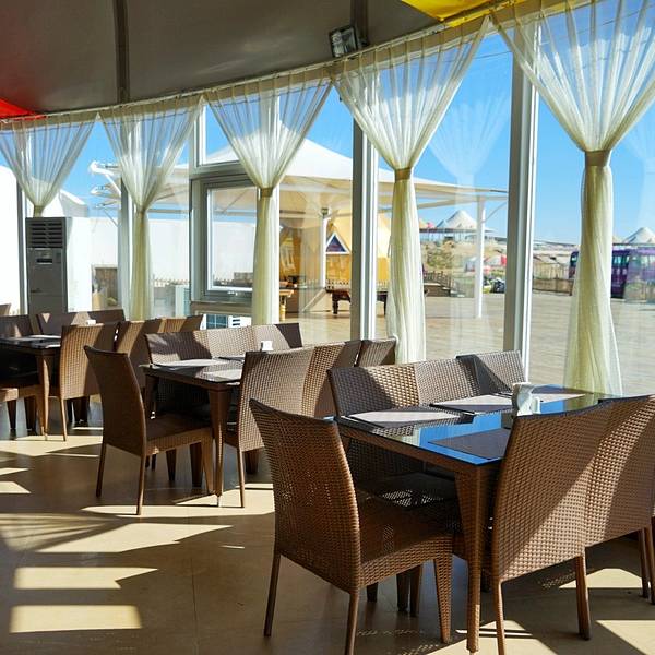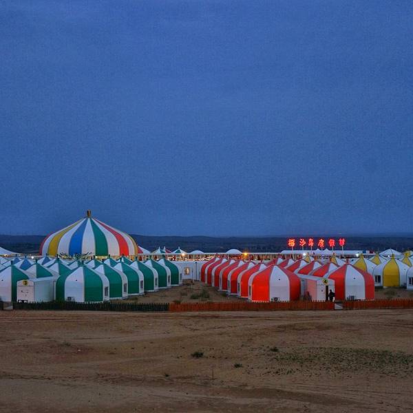 4天3晚的行程中,入住了两家酒店。第一家是位于莲沙岛的莲花度假酒店。 这家酒店最特别的是,未使用砖、瓦、沙、石、水泥、钢筋而建造的绿色建筑、环保生态型酒店,它不仅外观形似莲花,酒店中莲花的元素随处可见。更是成为远离都市,茫茫大漠中人们心灵净土的守卫者。在开业之初,莲花酒店就被美国有线电视新闻网(CNN)评为最值得期待的18家中国新型酒店之一。酒店内客房、餐厅、酒吧、咖啡吧、室外游乐区、表演区等应有尽有。 酒店特意做了挑高设计,增加了光源和通透感。置身沙漠之中,只有宽大的建筑,才能避免闭塞感。 正是夕阳西下的时刻,阳光把大堂照的透亮,光源在墙壁和地板上都组合成好看的形状。办理好入住手续,穿过长长的走廊去往客房。 走廊的设计是我很喜欢的风格。灯光把不同的沙漠景观图景投射在墙壁上。有些是骑骆驼行进的旅人,有些是拿着马头琴的蒙族少年,有些是弯弓的壮士……虽各有不同,却无一不展示了内蒙古库布齐沙漠的浓郁特色。当然啦,考验一家酒店的质量,肯定要看客房咯。客房面积不算大,但是所需一应俱全。色调与沙漠选择同一色系,在细节处加上几抹亮色。既不会过分花哨,也不会令人沉闷。拉开窗帘,便与沙漠面对面。 住过许多海景房,山景房,但是沙景倒是开天辟地头一回。莲花酒店的特别之处,还在于它有着丰富的室外活动区。 矗立在沙漠中的泳池,泳池旁的躺椅……如果只看这张图,大概会以为在哪个海边的高级酒店吧。可偏偏在这黄沙漫天的沙漠里,有这样看起来似乎格格不入的设施。 不过在沙漠中晒整天,回到酒店扑到泳池里的瞬间,才不管看起来搭不搭,真实的透心凉才是我要的呢。如果想出去转转,还可以用酒店的单车。成人单车或者儿童单车都有配置。即使不走远,在酒店周边一绕,也是格外惬意。 入住莲花酒店,还可以免费欣赏演员们带来的精彩节目表演。 夜晚的篝火晚会热闹非凡,适合小朋友的儿童剧场童真十足。还有音乐类互动、各种小游戏等等。在响沙湾游览整天,晚饭过后不想出门,也不会沉闷无聊啊。 就算拖着拖鞋,慵懒的在酒店里转几圈,也会收获这么多的精彩呢。 如果你是莲花酒店的客人,一定划重点划重点啦!!! 入住后,会佩戴一个手环。凭手环景区里众多项目都可以免费体验。比如往返各个岛的交通,比如骑骆驼体验啦,还有各场精彩表演。 当然也有滑沙等另行收费项目,收费项目会特别标记提醒。 第二家酒店是位于福沙岛的福沙岛度假酒店。 如果说莲花酒店更现代化,更休闲。那么福沙岛度假酒店便是妥妥的蒙族style,在这里的衣食住行,都能感受到蒙族风情。酒店由一个个五颜六色的蒙古包组成,看了同行的航拍手小伙伴的图,恨自己没有小飞机,只能平地看,也已经足够特别。客房内部还是偏向现代化。面积虽然小些,但是必备的东西应有尽有。我最爱的是这个走廊,一边的墙壁上挂满了响沙湾景区的美景图,另一面大大的落地窗,透过窗能看到酒店室外的游乐项目。与莲花酒店相同的是,这家酒店也有着室外泳池。 讲真,刚看到泳池的时候,我还觉得别扭,在沙漠里游泳什么的,总觉得有些违和感。但是看久了居然自然啦哈哈。泳池边还有水吧,夜幕降临,从外面玩儿回来,跟朋友点杯鸡尾酒,聊聊天绝对是最美好的助眠。与莲沙岛的莲花度假酒店相同的是,入住福沙岛度假酒店,也会佩戴一个手环,凭手环可以游玩福沙岛的众多项目。水吧的酒水也是无限畅饮哦~