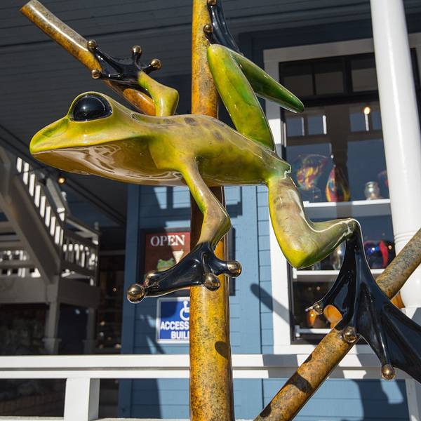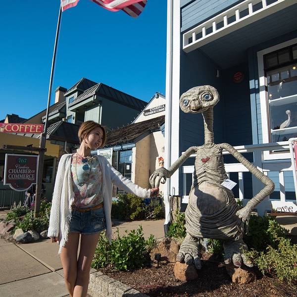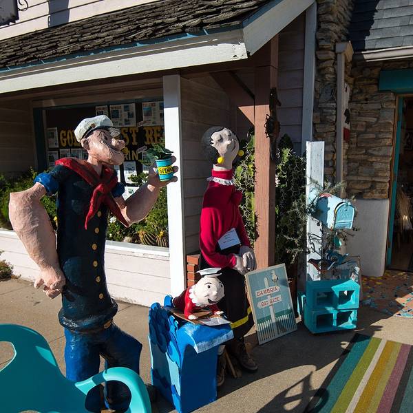 木栈道穿过大片的草地和灌木丛,泥土的香气和海风的清新扑面而来。平整的木板路其实是松鼠之家的屋顶,它们在游人的脚底下窜来窜去,与海边美景相映成趣。小镇坐落在原始森林中,其历史不足百年,开车15分钟就能将整个镇中心转遍。很多旅行者都是冲着美食和各种艺术小店而来,这里通常售卖风景画、旅游书籍、室内装饰品、古董、园艺用品和其他奇奇怪怪的各式小品。店主们个个友好,不管买不买东西他们都会跟顾客聊上几句。