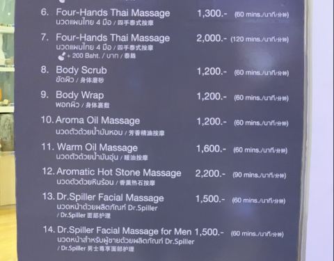【注意点11】马杀鸡的小费,通用标准是,做1小时的50泰铢,2小时的给100泰铢,结束时候直接给技师即可。通常接待前台都是可以换零钱的,他们也会知道你要换钱干啥。这个要准备好~ 展开
