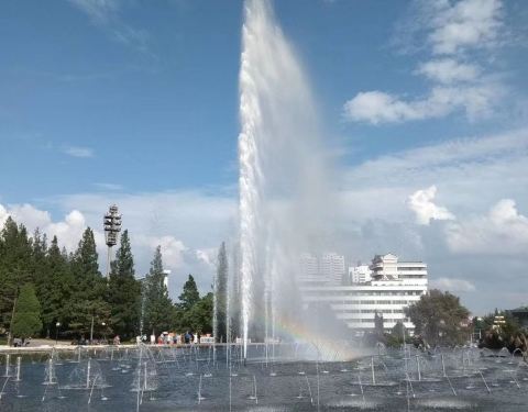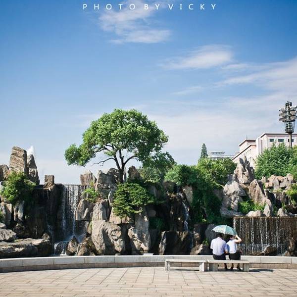 公园里有不同高度、不同种类的喷泉,在中心有喷水高度80多米的主喷泉公园里有不同高度、不同种类的喷泉,在中心有喷水高度80多米的主喷泉。这里是为数不多能看到朝鲜男女约会的地方。这不,我就看到几对打着伞约会的。