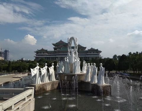 万寿台喷水公园在大纪念碑的左侧,是一个有着喷泉的大广场,也是我们参观朝鲜的第一个景点万寿台喷水公园在大纪念碑的左侧,是一个有着喷泉的大广场,也是我们参观朝鲜的第一个景点。大小喷泉据说有好几个,主喷泉的喷水高度达到80多米,水中矗立了一群舞蹈演员曼妙身姿的雕塑,让喷泉更具艺术效果。这...万寿台喷水公园在大纪念碑的左侧,是一个有着喷泉的大广场,也是我们参观朝鲜的第一个景点。大小喷泉据说有好几个,主喷泉的喷水高度达到80多米,水中矗立了一群舞蹈演员曼妙身姿的雕塑,让喷泉更具艺术效果。这里也是朝鲜市民休闲的地方,可以看到不少市民日常的生活状态。 展开