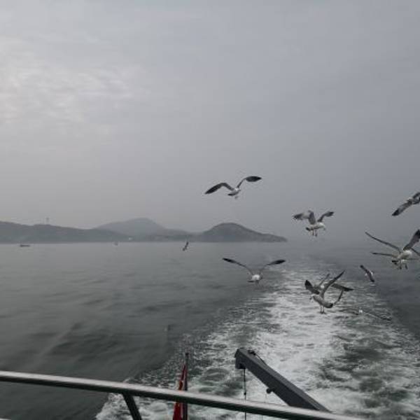 景色优美,尤其是经过万鸟岛,非常多的海鸥一路跟随,很多人给海鸥吃火腿肠,场面壮观。