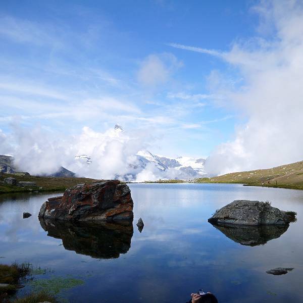 当云开见日,明信片一般的美景呈现在你面前时,所有之前的攀登和等待都是值得的我们又花了将近50分钟,从洛特峰走到了第一个湖Stellisee,这个湖真的非常漂亮。天气晴朗的时候,马特宏峰的倒映清晰可见。因为天空阴晴不定,所以好多人架起了三脚架,在那边等上半小时,才能看到最佳的景致。当...我们又花了将近50分钟,从洛特峰走到了第一个湖Stellisee,这个湖真的非常漂亮。天气晴朗的时候,马特宏峰的倒映清晰可见。因为天空阴晴不定,所以好多人架起了三脚架,在那边等上半小时,才能看到最佳的景致。当云开见日,明信片一般的美景呈现在你面前时,所有之前的攀登和等待都是值得的 展开
