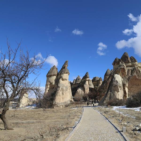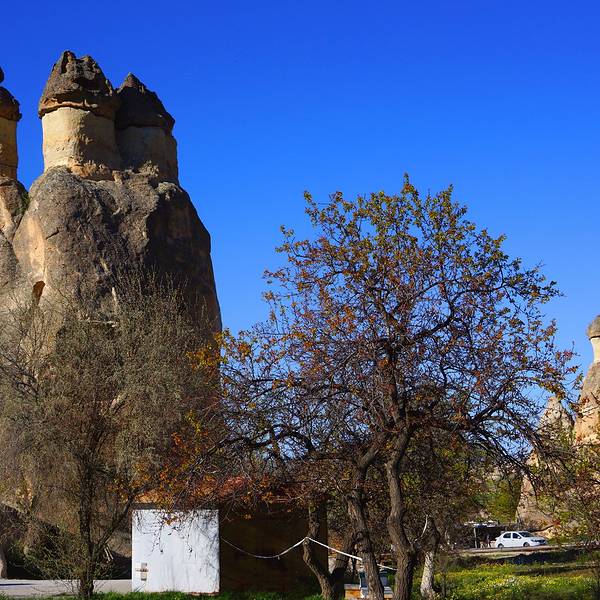 最漂亮的仙人烟囱景点,还得数济尔维的奇特风光,一字排开数百座仙人烟囱,衬在蓝天之下,甚是壮观。虽然形态各异,但大多顶着一个巨大的蘑菇,更觉造型美丽。济尔维露天博物馆,也是世界遗产,但内部需要步行的路程比较长,所以我们没有去参观。