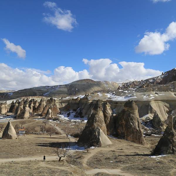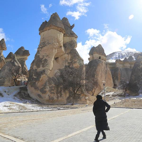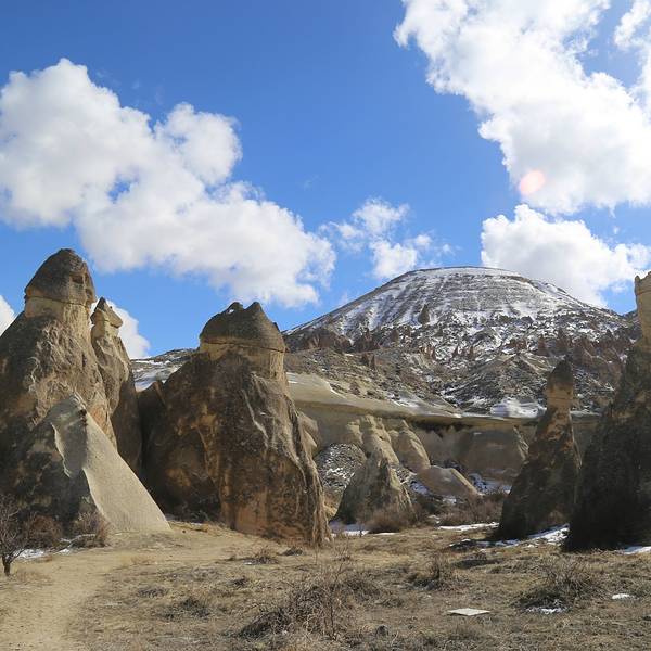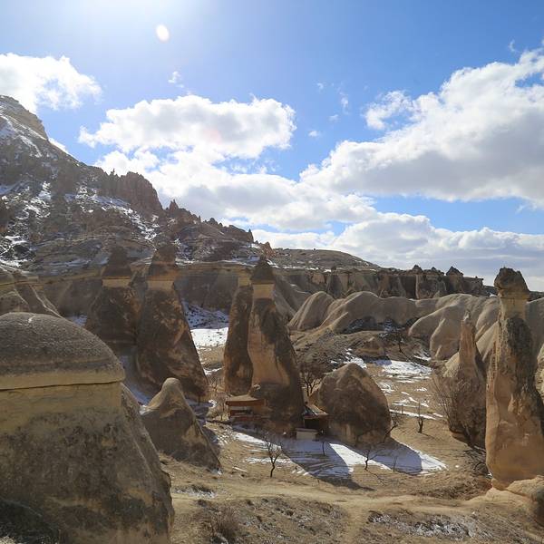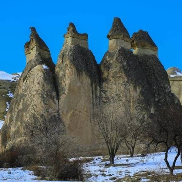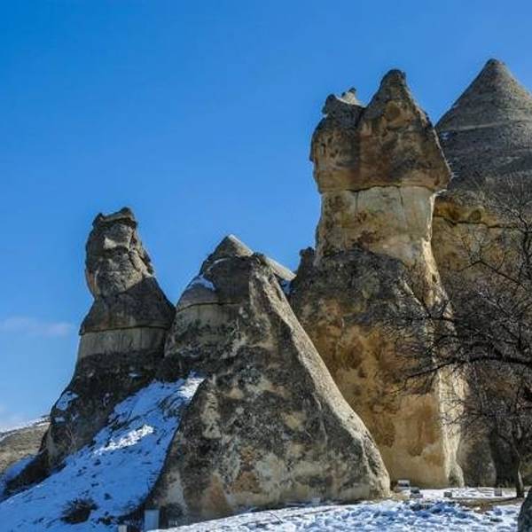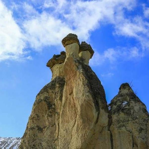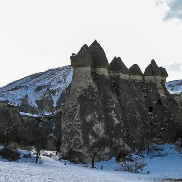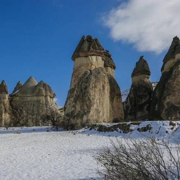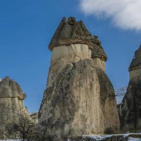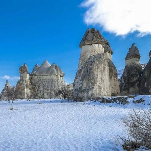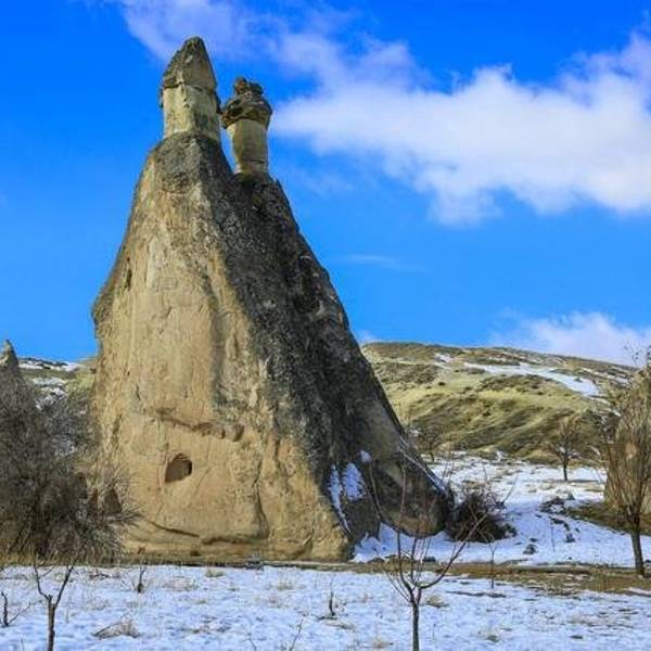 这些圆锥形带蘑菇的火山岩 若在夏日或者没有雪花的时光里