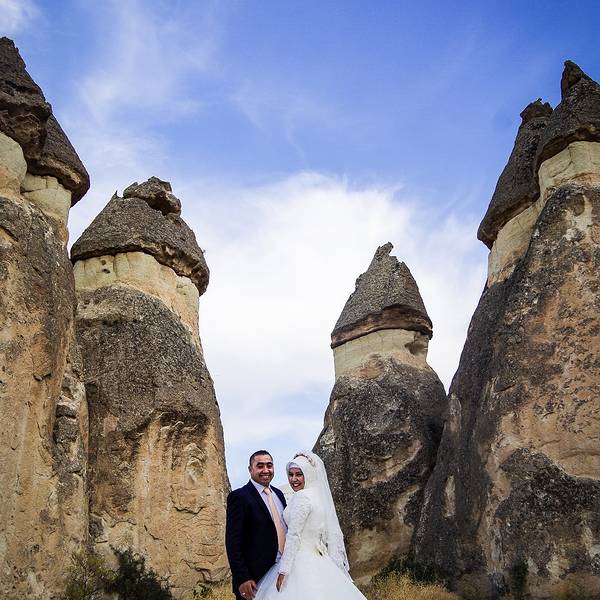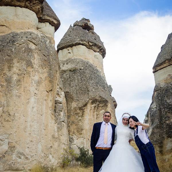 就是这样的怪石嶙峋偶遇的土耳其新人拍摄结婚照的场景