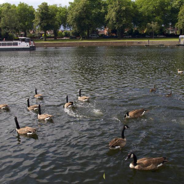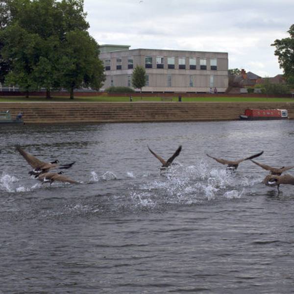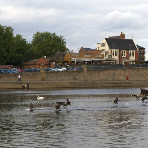从诺丁汉市中心出发,与沃伦顿方向相反,大约半个小时步行路程,就看到了特伦特河,河里有野生的水禽。