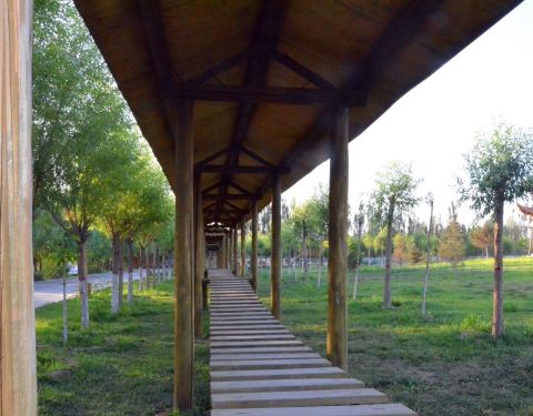 其实我们是住在里面,顺便游玩的。房费不贵,特价房200多,非常划算。据说单独入园要另給45的费用其实我们是住在里面,顺便游玩的。房费不贵,特价房200多,非常划算。据说单独入园要另給45的费用。园子毕竟精致,在嘉峪关这个地方应该算难得的了。里面花草葳蕤,可以看孔雀开屏(特别提一句,孔雀极多,不负孔...其实我们是住在里面,顺便游玩的。房费不贵,特价房200多,非常划算。据说单独入园要另給45的费用。园子毕竟精致,在嘉峪关这个地方应该算难得的了。里面花草葳蕤,可以看孔雀开屏(特别提一句,孔雀极多,不负孔雀苑之名);也可以在湖畔草坪休息,看小朋友们玩各种秋千、跷跷板、梅花桩等等拓展游戏;还可以去葡萄庄园散散步,看看挂在枝头的美人指、夏黑……然后上观景台远眺嘉峪关城和悬臂长城。我们一行人都觉得选择住这里是个非常好的主意。唯一不好的就是餐厅了,等待时间太久,要有心理准备。 展开