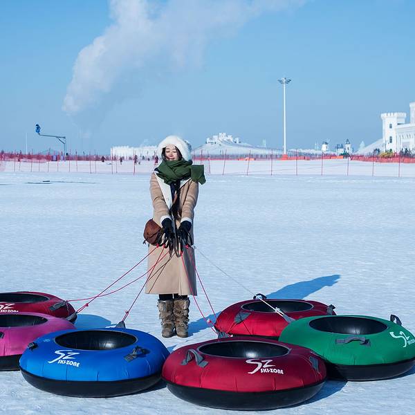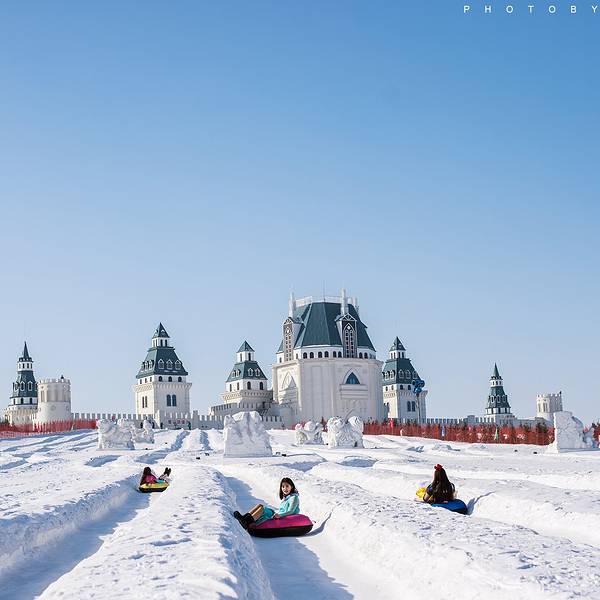 也许我们每一个人的初心都住在这童话世界的城堡里,只是在成长的过程中丧失了让它自由飞翔的勇气。那份初心像飞舞的精灵,她渴望带你去看更广阔的世界当我跟随着我心里的精灵来到了-30度的地方,对于一个生活在南方很少看到雪的孩子,第一次来到那么冷的地方,这本身就是对自身的一个挑战。而宇宙万物的创造者就是这样的奇妙,将一年分为四季,那些我们眼目未曾看过,脚步未曾走过的地方,精灵就带着我们,飞到远方去看一看。当我推开雪莲城堡的大门时,就像纳尼亚传奇里的孩子们穿过家里的柜子就来到了另一个充满着魔力的奇幻世界一样。在那里,让我们变得更有勇气,更有智慧。因为相信,就能触及魔力,就能看到远方。心里住着的那个精灵已经坐到了雪圈上,要带我去看冰与雪的世界。我来到她面前,看着这长达500余米的滑道,一阵寒风吹过来,我顿时退后了几步。对于一个新世界,我们总是充满着好奇,同时也充满着胆怯。她轻柔的衣袖一挥,对着我笑一笑。于是,我带着勇气,决心要去寻找一个更好的自己。