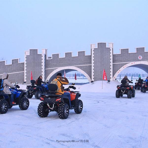 其实每个人都记得,爸妈年轻时带自己去游乐园的模样,记得童年玩伴的模样,记得自己最无忧无虑的模样,在这里,可以重新找回那些记忆。本来骑摩托车就不是一件容易的事,偏偏还是在冰上骑摩托车,这可真叫人难办啊,来吧,看看你的实力哦。不得不说这摩托骑的简直酸爽啊,一大圈估计有一千米左右,到最后简直冷的手脚发麻啊,动弹不了,所以建议下次去玩的小伙伴带一双厚一点的手套,最好要防风的,不然根本骑不动!最刺激的莫过于漂移了,六个人坐在摩托车后面的学圈上,任由摩托小哥甩来甩去,让我用脸深刻体悟到了刘德华那句歌词“冷冷的冰雨在我脸上胡乱地吹。”踏着白雪走在寒风凛冽的街道,抬起头,我看到雪缓缓飘落,尽管雪花很小,我还是可以看到雪花的形状,静静地任由它飘零在脸上,冰冰凉凉的感觉,这里的冬天美, If you have a holiday,来试试把耳朵冻到脆。