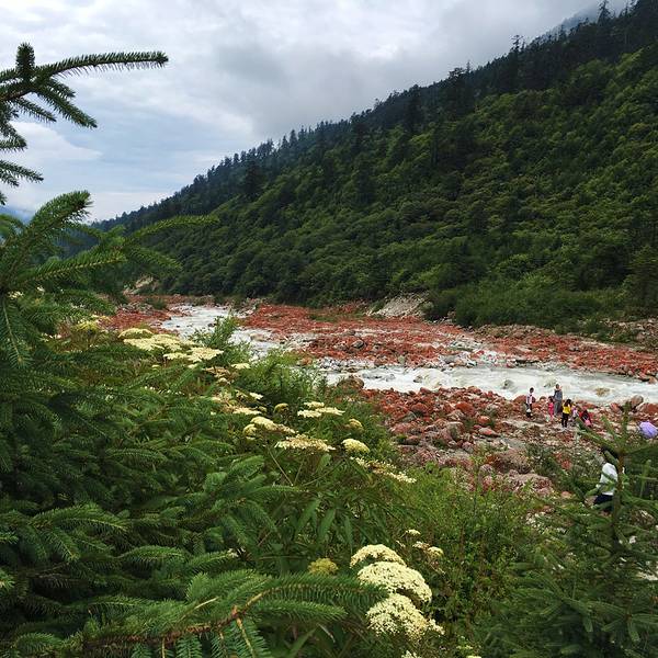雅家梗有最大的红石滩,蜿蜒几十公里从峡谷深处溢出鲜艳的红色。
