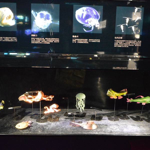 ...知识、传播深海最新科学研究成果及科技,尤其期望激发广大青少年对海洋科学的热爱、对深海大洋的兴趣同济大学“深海探索馆”旨在向公众普及海洋科学知识、传播深海最新科学研究成果及科技,尤其期望激发广大青少年对海洋科学的热爱、对深海大洋的兴趣。为了营造出“深海”的氛围,整个场馆都处于昏暗中,点点的亮...同济大学“深海探索馆”旨在向公众普及海洋科学知识、传播深海最新科学研究成果及科技,尤其期望激发广大青少年对海洋科学的热爱、对深海大洋的兴趣。为了营造出“深海”的氛围,整个场馆都处于昏暗中,点点的亮光也是深海蓝色。通过一系列的图片光影,你能欣赏海底热液幻影、活跃在幽暗深海的珍奇生物、多姿多彩的海洋微体生物群等景观,还能模拟在“蛟龙号”上抓取深海样品。深海探索馆仅周末开放。 展开