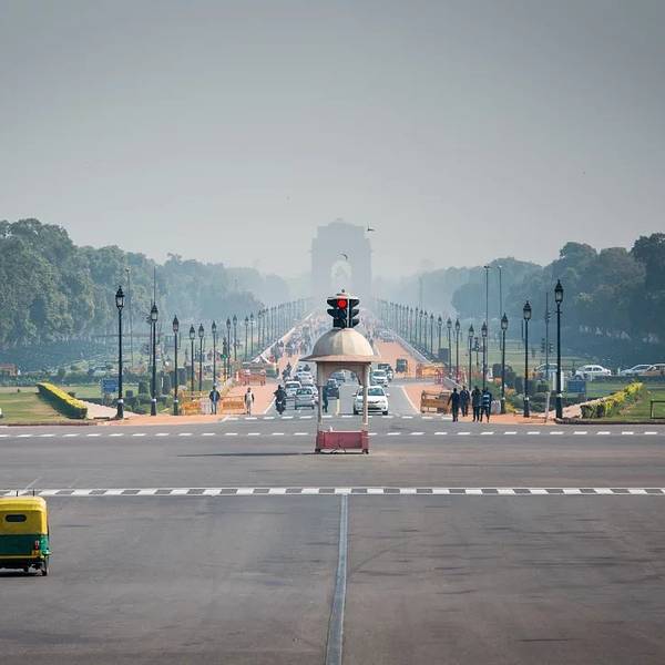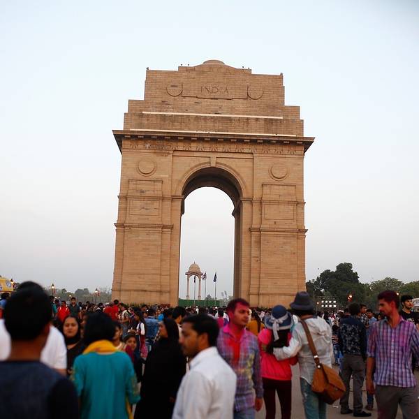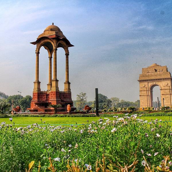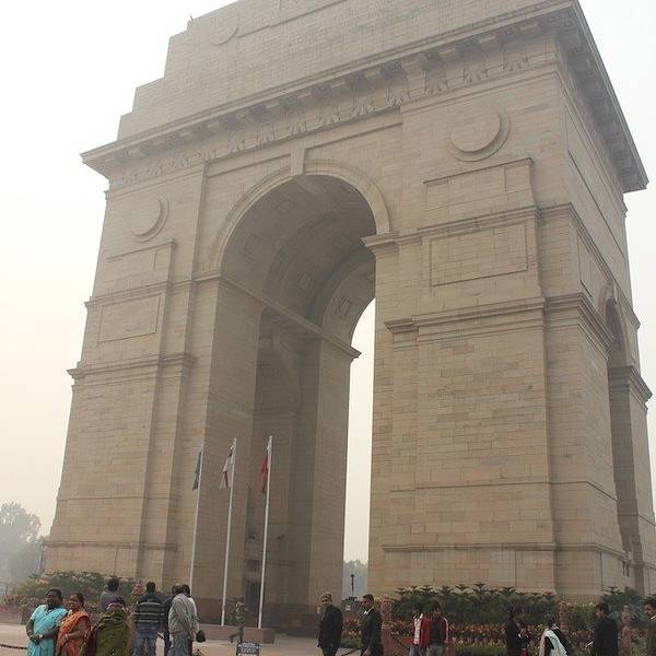印度门坐落在国王大道上,是德里的地标建筑,许多重要的道路从这里向外放射出去。