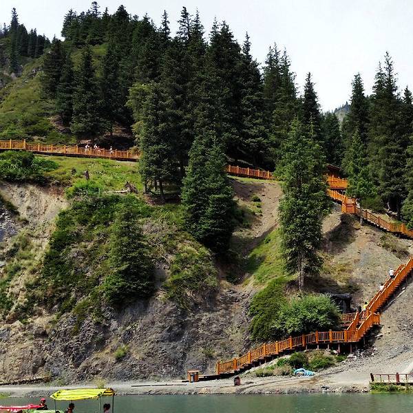 金骆驼 自驾过去一路的风景到时非常不错,特别是路上有一段红褐色的山体非常特别,它们性质各异,据说都是被...天山大峡谷是个一点也不像新疆的一个自然景区,它距离乌鲁木齐四十多公里,自驾过去一路的风景到时非常不错,特别是路上有一段红褐色的山体非常特别,它们性质各异,据说都是被风雨腐蚀的结果,路上还有个特别的...天山大峡谷是个一点也不像新疆的一个自然景区,它距离乌鲁木齐四十多公里,自驾过去一路的风景到时非常不错,特别是路上有一段红褐色的山体非常特别,它们性质各异,据说都是被风雨腐蚀的结果,路上还有个特别的一幕,就是这里的山羊居然会爬山,实在让人叹为观止。进入景区,就好像到了另外一个城市,郁郁葱葱云杉林与新疆风化山峰的形象有点格格不入。里面的草原非常大,草原上还有数不清的山羊,在那吃草休息。还有超级多的帐篷。远远就能看见一个瀑布和一汪湖水,湖水很清澈,到这玩耍的人也很多,这里非常适合夏天过来避暑,很多小孩不管湖水冷不冷,都下水玩耍。走进山间,就是一片神秘的云杉林,这里的树木都出奇的整齐有序,中间修了一条栈道,可以从这上去直到山顶,云杉林里面很潮湿,很多地方都长满了苔藓,在新疆这个非常干燥缺水的地方是很少见到的呢,可能因为附近的湖泊的关系,就连空气也觉得非常潮湿,云杉林内还时不时的出现一些不明生物,小小的,不知道是什么。到了这里没有一天时间是游览不玩的,景区内还有三个个吃饭的地方,照壁山庄、贵宾楼和天鹅湖接待中心,本来以为价格会很贵,不过还是能在接受的范围内,可以吃吃大盘鸡,非常不错。