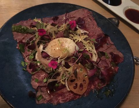 味道不错,尤其是生牛肉比较惊艳,海鲜拼盘就有些一般。这家店就在加拿大广场边上