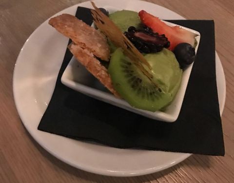 确实对的起第一日餐这个称号生意很好的一家店,早早订座,周一的晚上六点半,不小的店堂里全部坐满,门外还有相当数量的等座。店里有一排海景座,夜景还是不错的。服务相当到位,点了套餐,对忌口的顾客做了相当...确实对的起第一日餐这个称号生意很好的一家店,早早订座,周一的晚上六点半,不小的店堂里全部坐满,门外还有相当数量的等座。店里有一排海景座,夜景还是不错的。服务相当到位,点了套餐,对忌口的顾客做了相当大的调整。以海鲜为主,寿司尤其好吃,特别是炙寿司,强烈推荐。牛肉配了店里特制的芥末辣椒酱。牛肉虽然和日本牛没法比,但还是很好吃的,鲜嫩可口。甜品是抹茶系的冰激凌和蛋糕。套餐性价比高,味道很好,一整套吃下来男人应该也够了。菜的风格个人认为属于日西融合菜。是到目前为止,本人在西方国家吃到最好吃的日餐。菜色很多,照片放不下了。