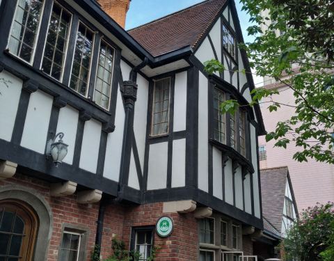 邬达克纪念馆是由邬达克旧居改造而来,这座坐落在番禺路的旧居是由邬达克本人亲自设计建造的一座具有英国乡村风格的建筑,砖木结构显得很复古,体现了邬达克大师独特的建筑风格。当年还有一个大花园,现在已经被改造成一个学校的操场。