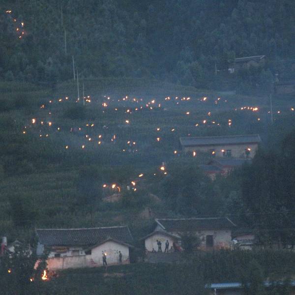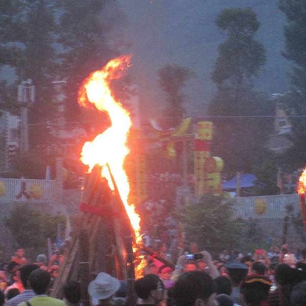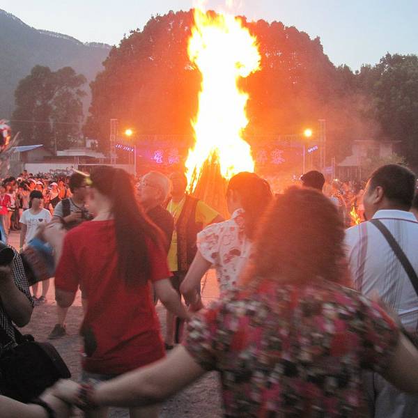 在彝族地区,人们对火的崇拜和祭祀十分普遍,火是彝族追求光明的象征。在节日庆祝时要杀牛、杀羊,祭献祖先,有的地区也祭土主,相互宴饮,吃坨坨肉,祈求六畜兴旺、五谷丰登,并进行集会、唱歌跳舞、赛马、斗牛、摔跤等活动,然后举行盛大的篝火晚会,彻夜狂欢。 当夜幕降临后,人们挥动火把,成群结队绕村串寨,翻山过田,互相往对方的火把上撒松香粉,打火把仗,满山遍野照耀得如同白昼。照彝族的习俗,在火把上撒松香粉,使火把“嘭”地腾起一团绚丽的火花,并扬起一股香气,是表示一种美好心愿:后辈对老辈撒,是尊敬,祝福长寿;长辈对晚辈撒,是爱抚,祝愿吉利; 同辈互撒,是亲密友爱;青年男女互撒,则是恋爱的开始。 路南、圭山等地的彝族,节日期间,人们弹着大三弦,跳起“阿细跳月”,同时举行摔跤、斗牛等活动;楚雄、弥勒等地的彝族,也举行传统的“祭火”仪式。节日之夜,在彝族聚居的大山深处,到处是“火树银花不夜天”,景象十分壮观。