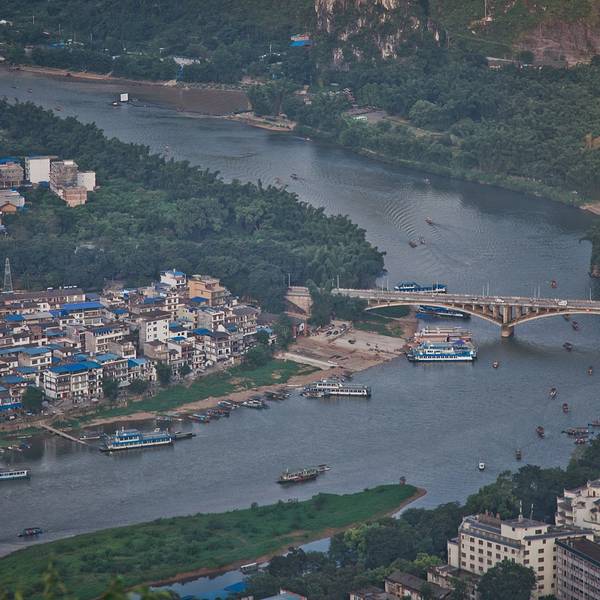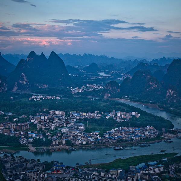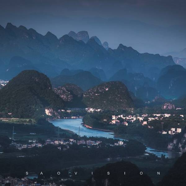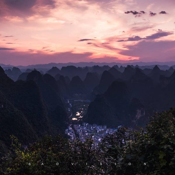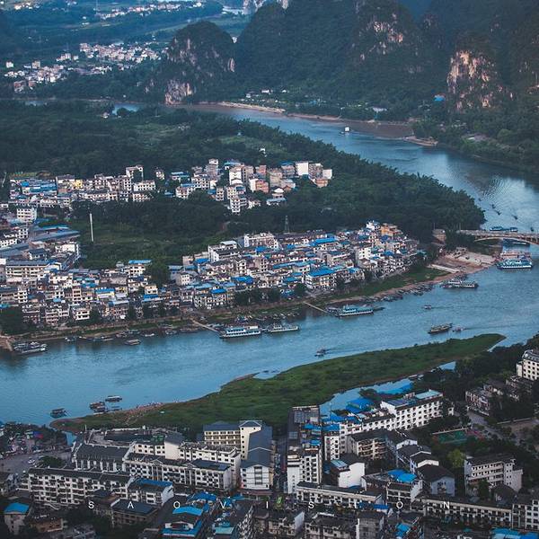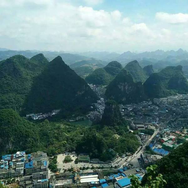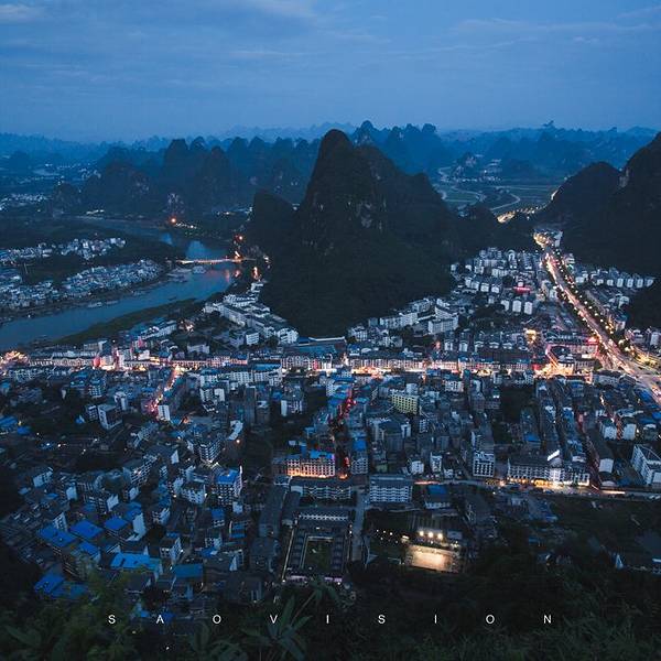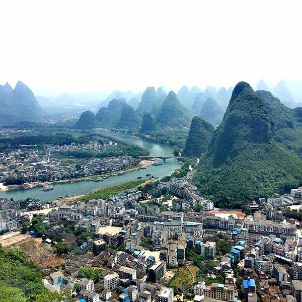 俯瞰整个阳朔城,后来有人给我说 在兴坪镇码头的老寨山俯瞰全貌效果更震撼,我没去过也无法断定真伪#阳朔之巅——电视塔上的那座山#