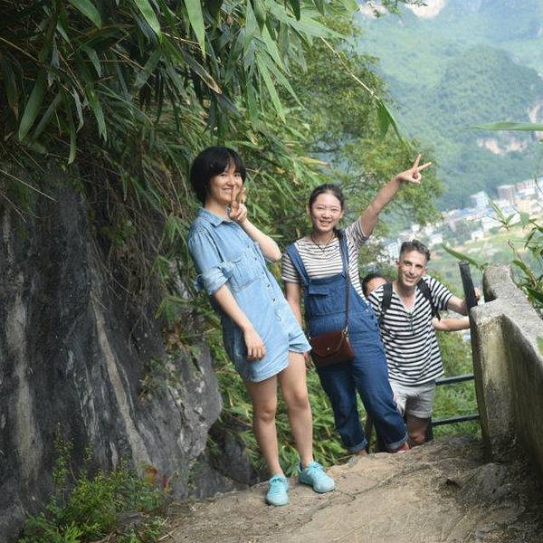 第二天我和丽颖还是决定了要去,那个和我们住同一客栈一直在寻找玩伴的想融入当地人生活的外国人也加入了我们~双姐知道了帅哥要去马上从床上蹦起来,”我要去我要去,等我换个衣服!”然后王莉也开始换衣服,队伍就立马变得庞大起来啦,哈哈