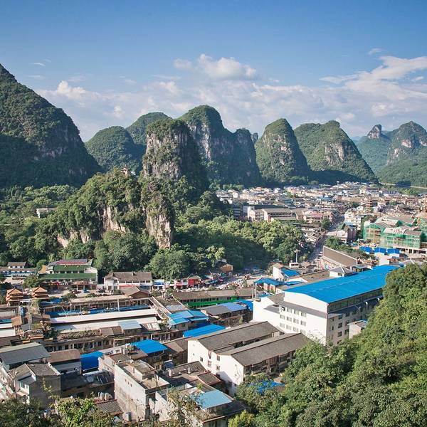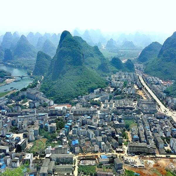 小小阳朔县被大大的山包围,县中有山,山中有县,空气异常好。