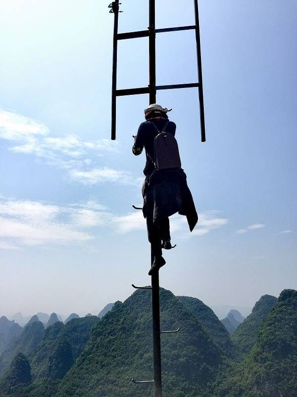 打赌你不赶爬那根天线[阴险]...阳朔市区电视台背后的一座山,没有游客,一个多小时能登顶。
