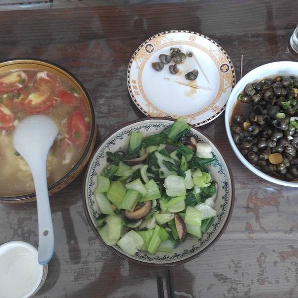 去乌镇游玩玩回程的那个中午来这家鲜香园吃的。因为这家土菜馆里乌镇火车站真的很近,步行约100多米。店子不是很大,只有1个大圆桌,5-6张方桌(坐4人)。但性价比真心很高~常见的川湘菜店里都有,经过改良,不那么辣不那么麻,味道也还挺好~浙江这边大多数是不吃辣的,但乌镇来自全国的游客是真心多。首先来说说环境卫生吧,桌子地面都很干净,饭碗啥的也是真空消毒包装~比较古朴典雅的那种棕木桌椅~环境还是满意~空调开得很足!我们两个人点了四个菜:口味螺丝,青菜香菇,白水鱼,还有个西红柿蛋汤,分量完全够3-4个人吃了~口味整体来说比较偏清淡,不辣,煮的火候保证了蔬菜的原汁原味~特别推荐白水鱼,鱼肉非常嫩很鲜美,加的其他酱汁不多,但也没有腥味~我看邻桌点了个大盆的酸菜鱼片,很有卖相,值得一试。PS:店子里是提供酒水饮料的,夏天的时候很多点冰镇啤酒~