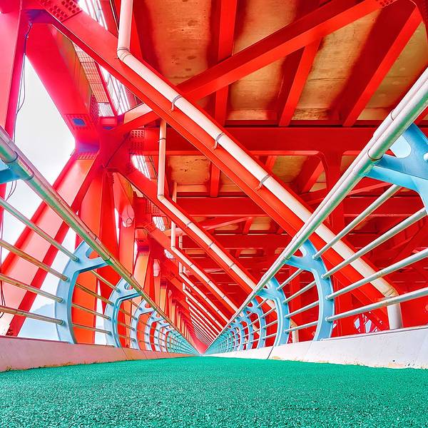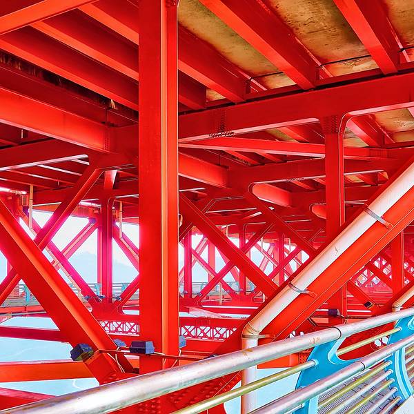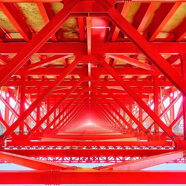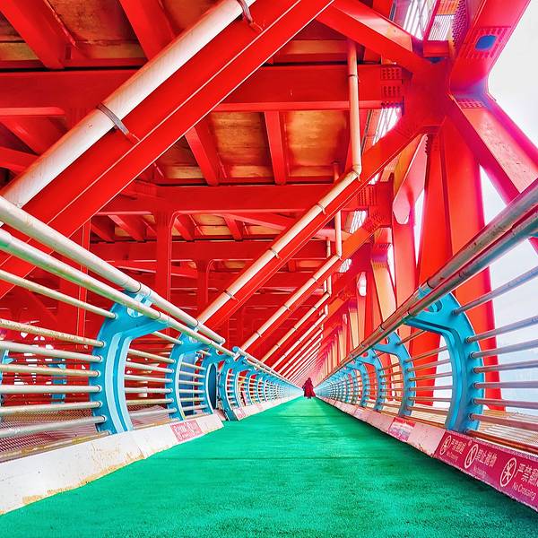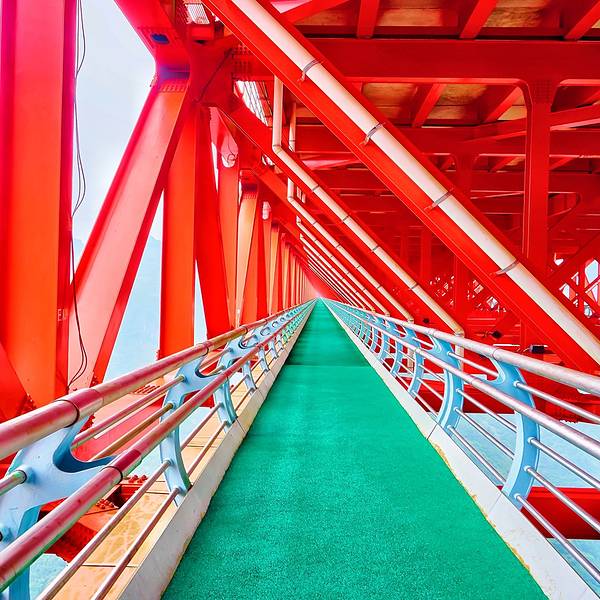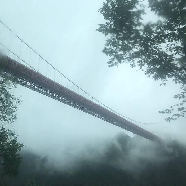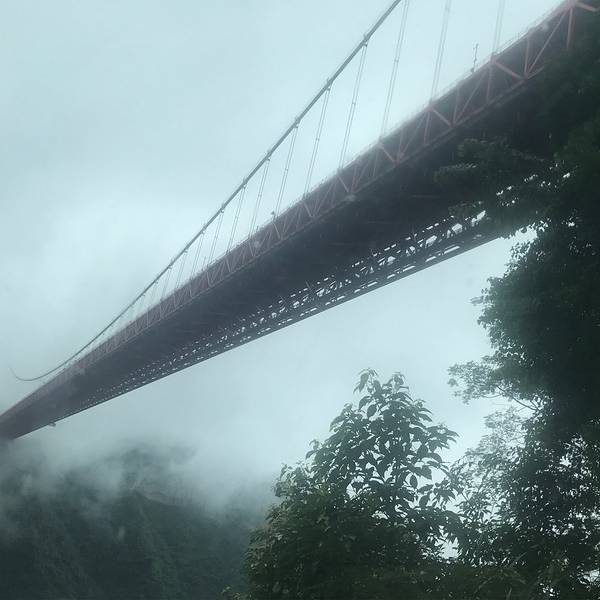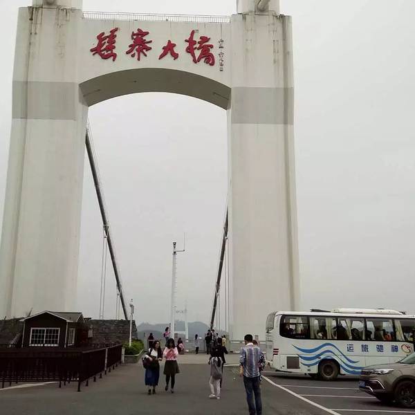 “虎踞龙盘马卧槽,长桥悬吊两山高。行人车辆云中过,鸟语涛声风里号。“